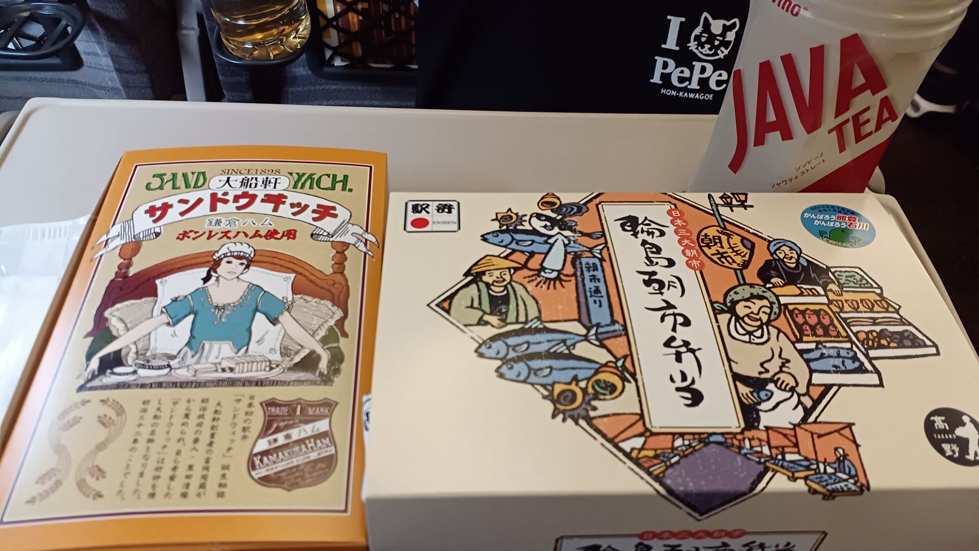 車内で、駅で買ったまだ温かい薄皮一口まんじゅうモグモグ(うまい)