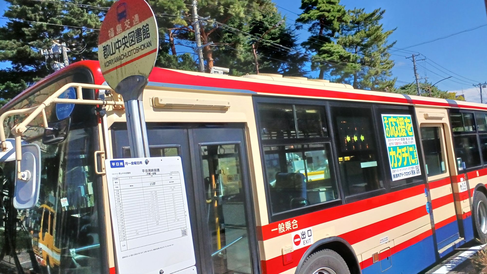 郡山駅から中央図書館を通るバスにグットタイミングで乗車。200円