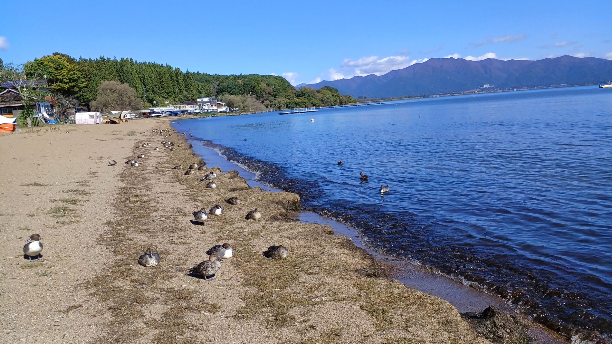 駅は混雑でも、猪苗代湖は静かでした。カモが昼寝してた(*^^*)岸に残るカモの足跡がカワイイな~♪