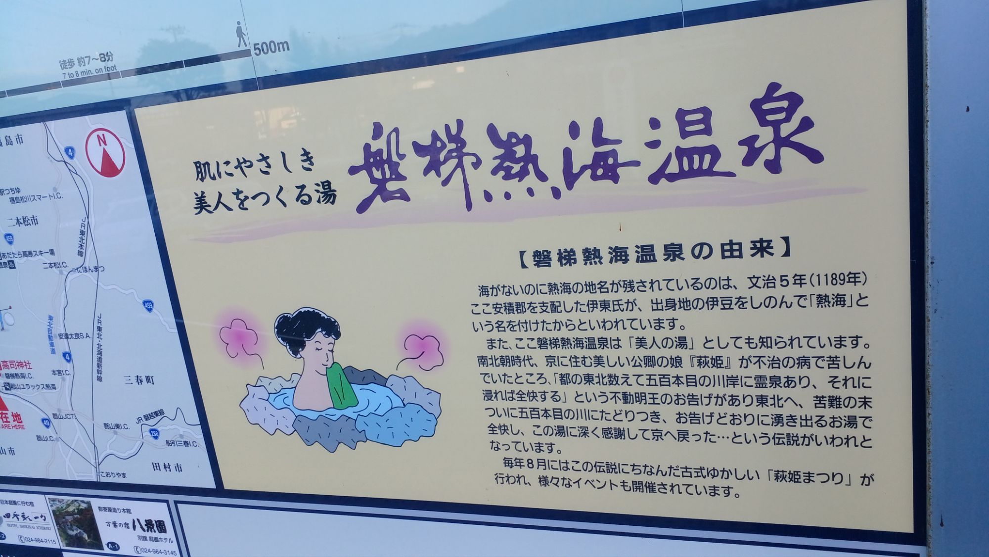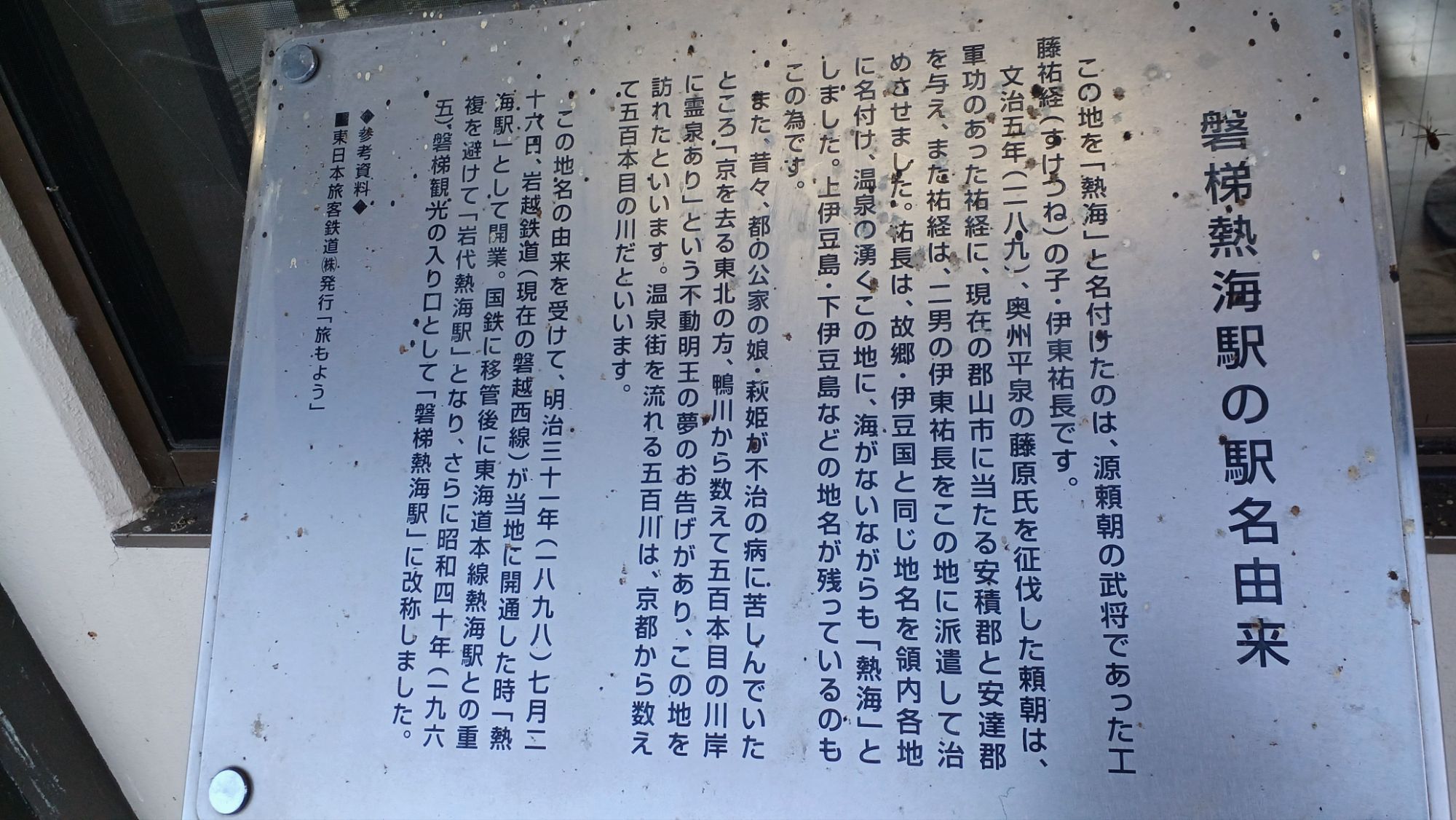 この地名の由来をうけて、明治31年(1898年)、岩越鉄道(現在の磐越西線)が開通した時に駅名を「熱海駅」として開業。国鉄(今のJR)に移管後に、東海道本線の熱海駅と重複を避けて「岩代熱海駅」となり、昭和40年(1965年)に磐梯観光の入り口として「磐梯熱海駅」に改称したそうです。