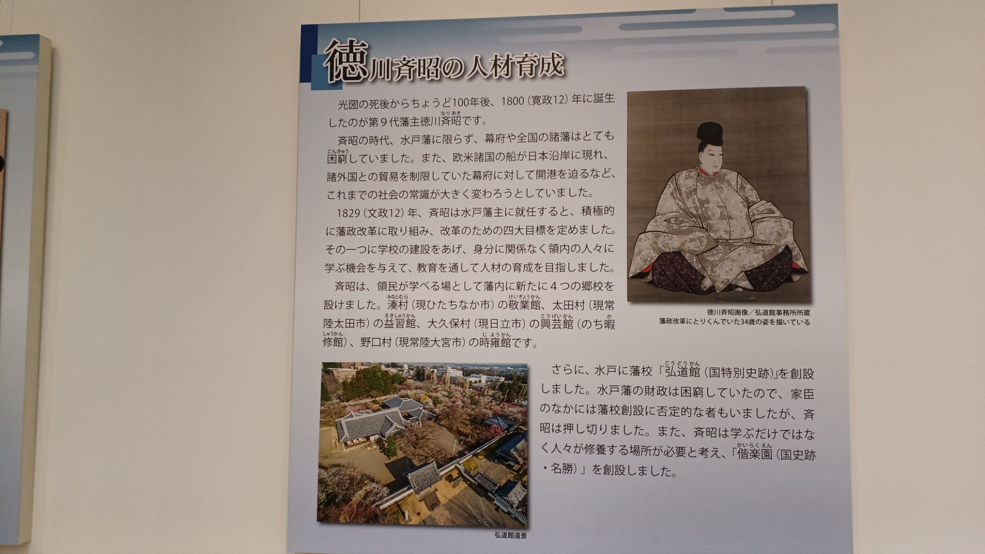 徳川斉昭は、水戸藩の第9代藩主。改革者というイメージを持ちました。教育に対する水戸の人たちの理解が得られる素養があったのかもね。