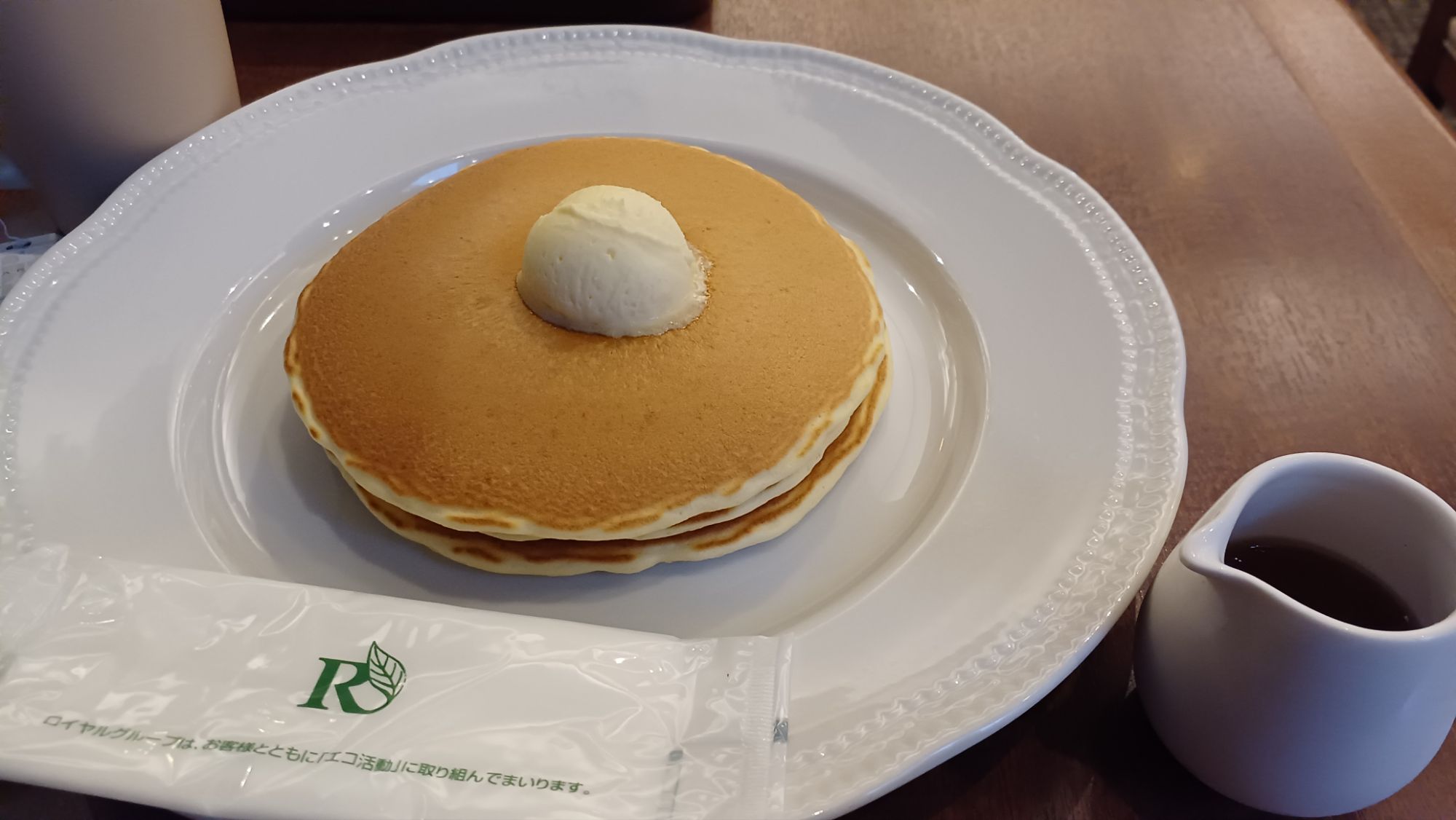 帰りに、近くにロイヤルホストがあるから、パンケーキとドリンクバーセット1100円。