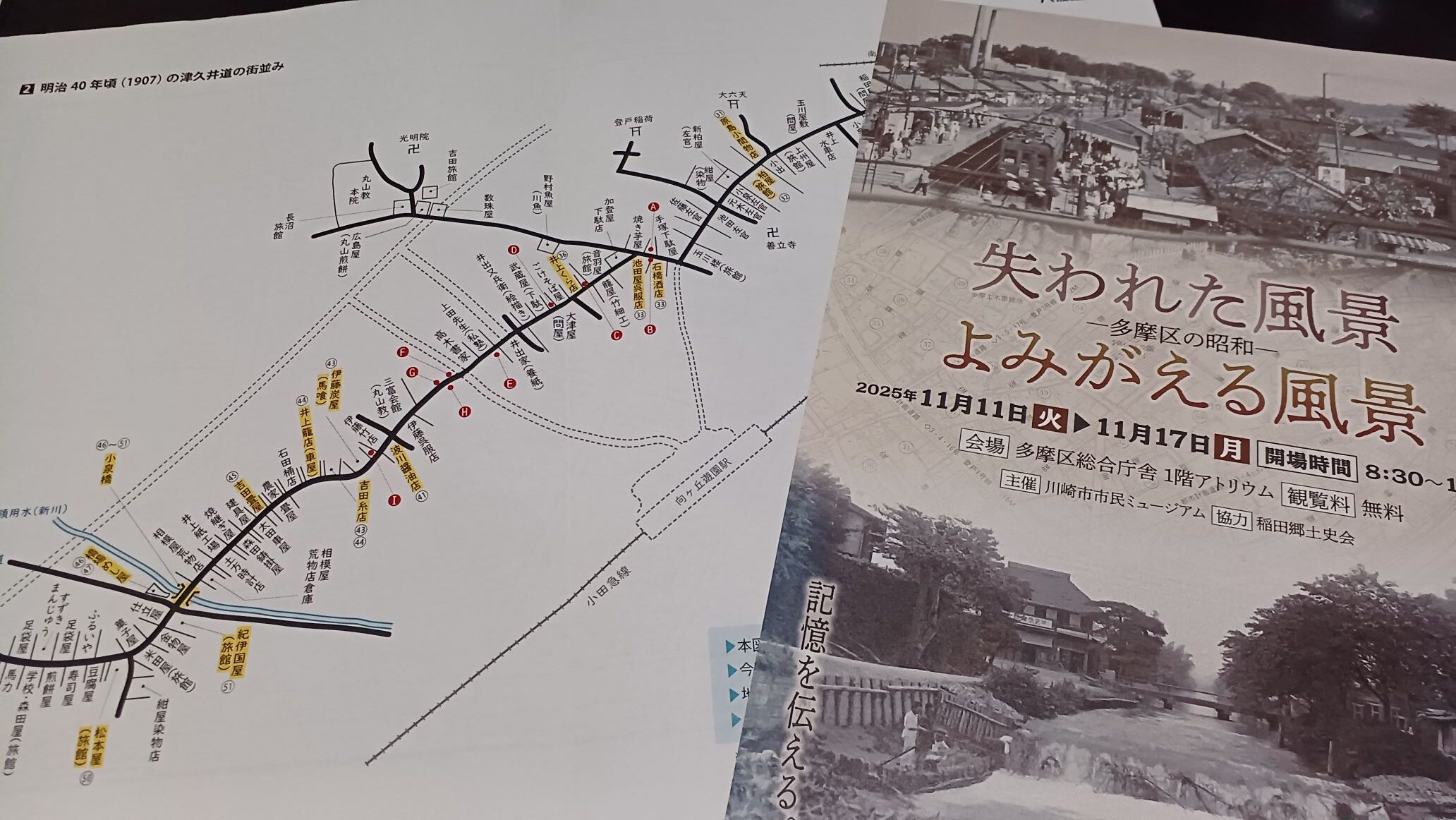 明治40年頃の津久井道の町並みと、昭和30年頃の向ヶ丘遊園駅前商店街(北口)、の地図パンフレット配布がありました。もちろんもらって帰りました♪