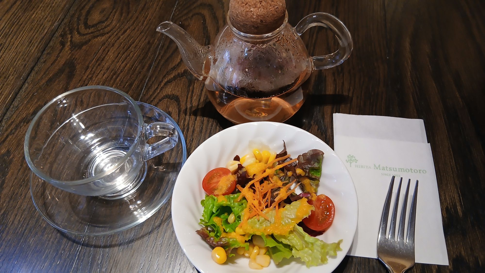 ハーブティー(ポットサービス)800円を注文です。ペーパーも店名が印刷されててイイなと思って撮りました♡