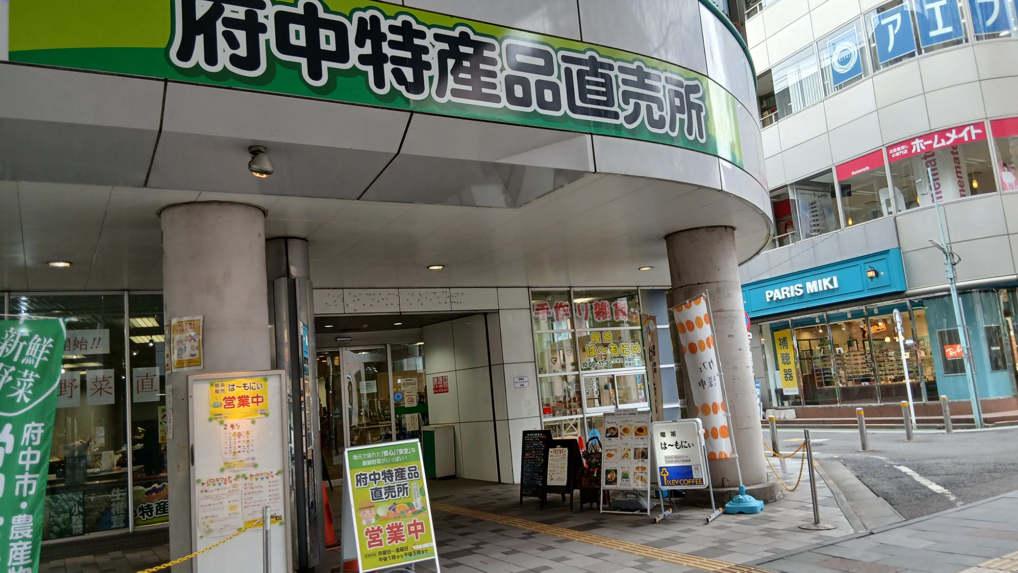 京王線の府中駅の改札口から降りて、小さな横断歩道を渡ると農作物直売所があります~。