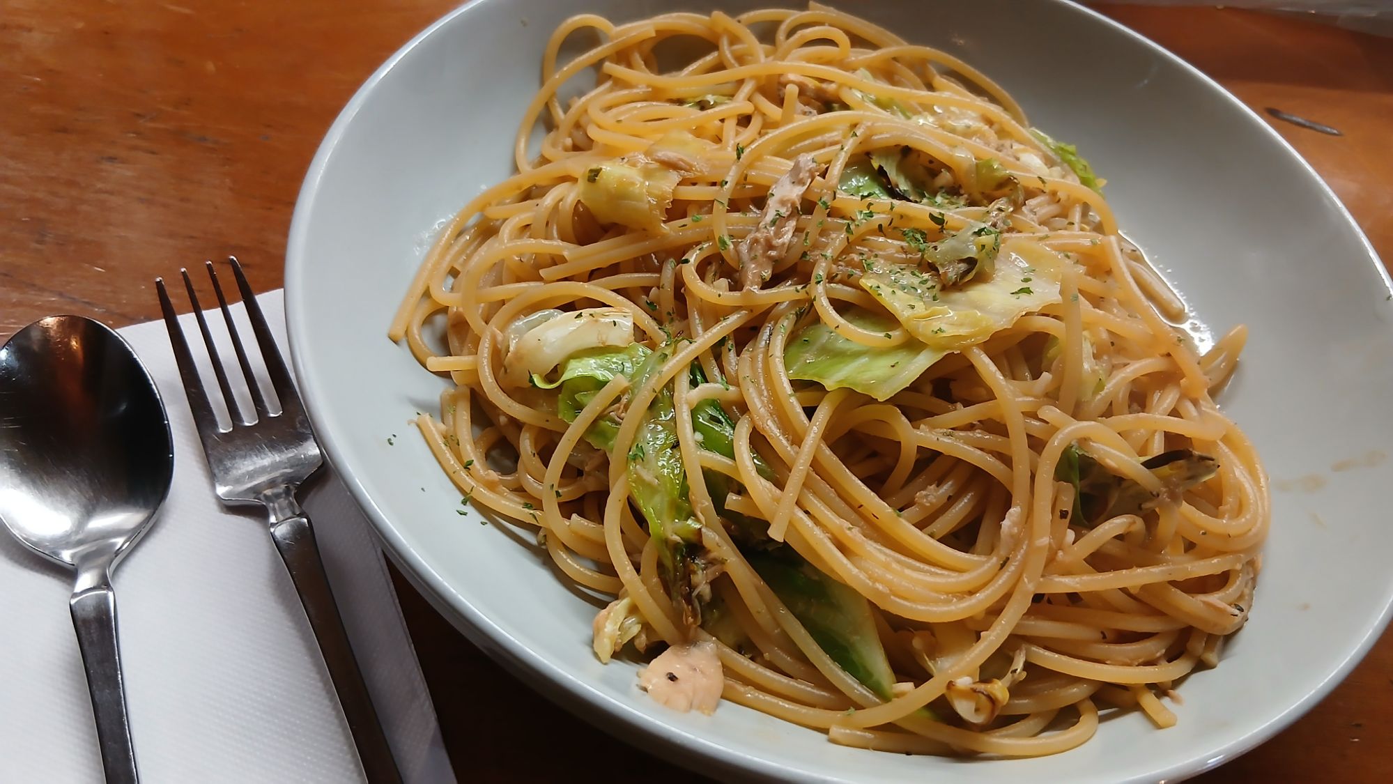 ツナキャベツのしょうゆ味。ガーリックも入ってて後を引きます♡