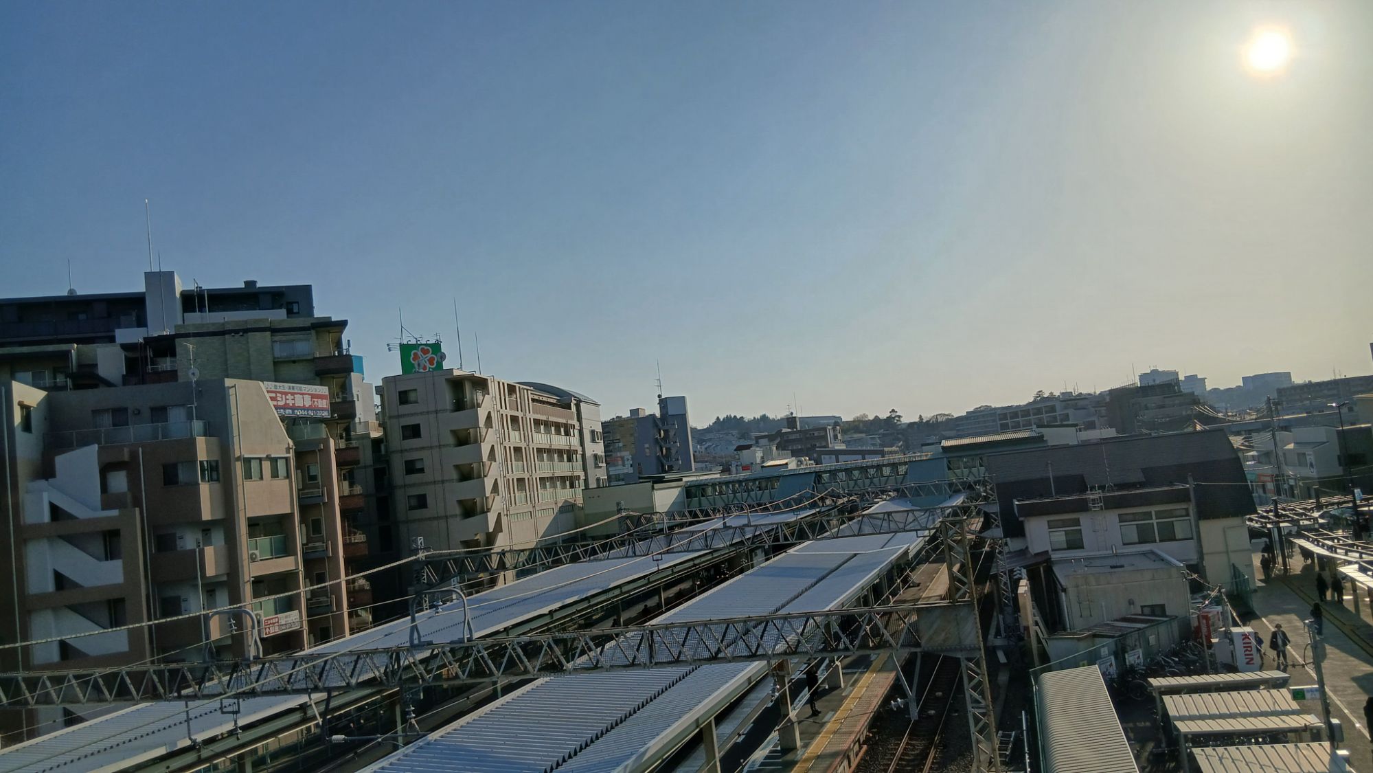 銀座フォレストから向ヶ丘遊園駅の北口を眺め。(3.7撮影)