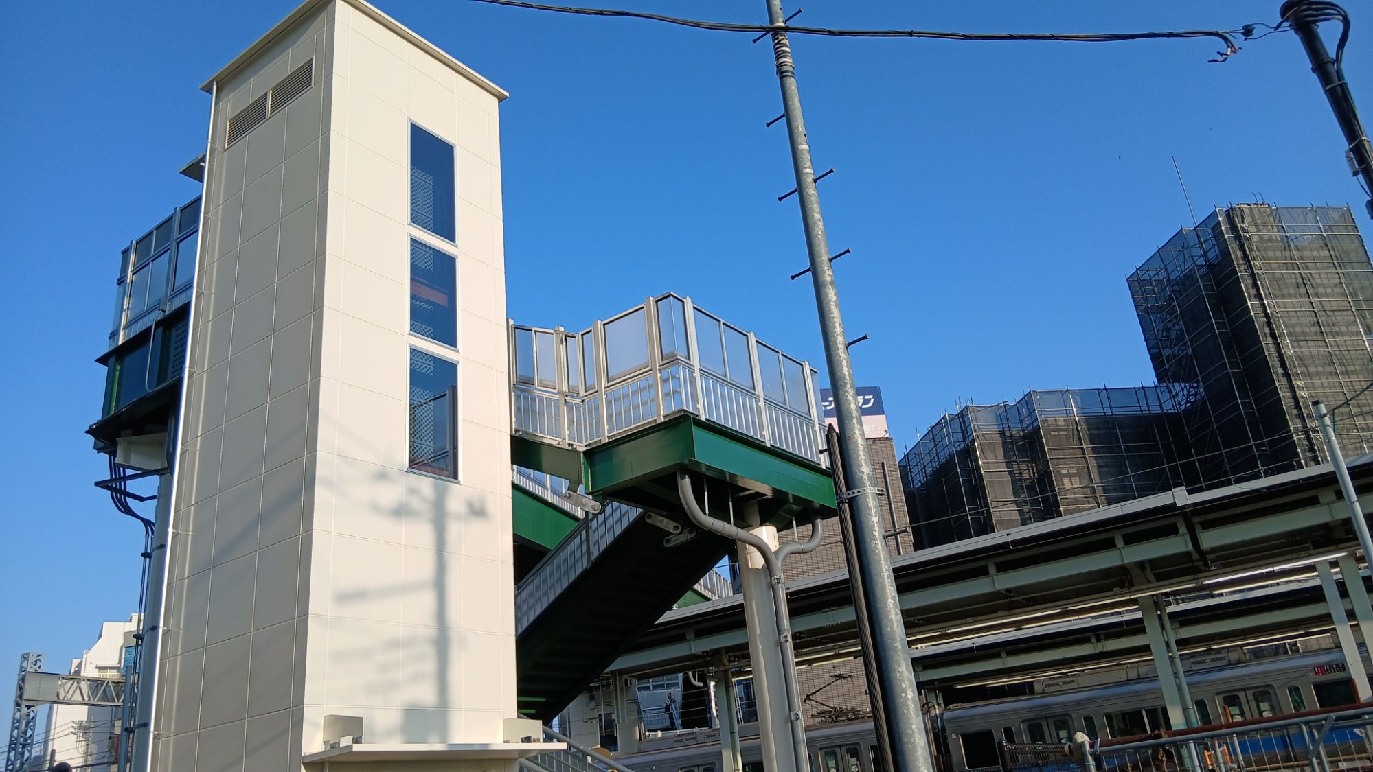 小田急線の踏切、登戸1号踏切、というのかしら、無くなりまして、代わりに跨線橋が出来てます。緑色です。(もっと近くで撮って来ました!3.21)