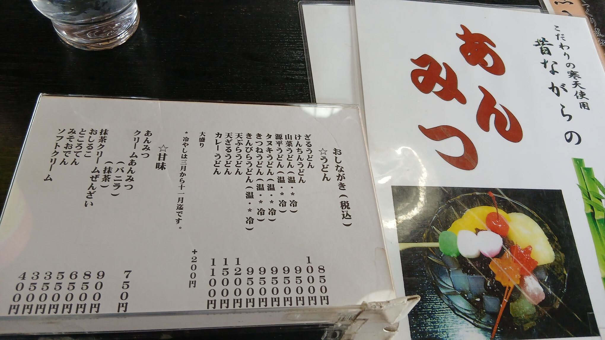 夫は、クリームあんみつが食べたそうだったけど、妻は知らん顔をしました。
